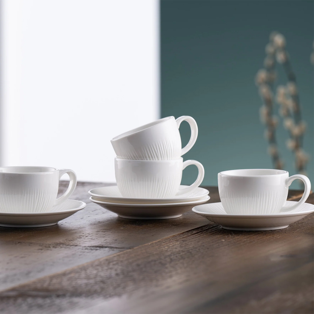 The Erne tableware collection is crafted from crisp white porcelain, featuring a subtle linear pattern inspired by the serene banks of Lough Erne. Elegant yet versatile, Erne is perfect for sophisticated celebrations while remaining practical for everyday use. Its timeless design appeals to both contemporary minimalist and classic tastes, blending seamlessly into any home.
